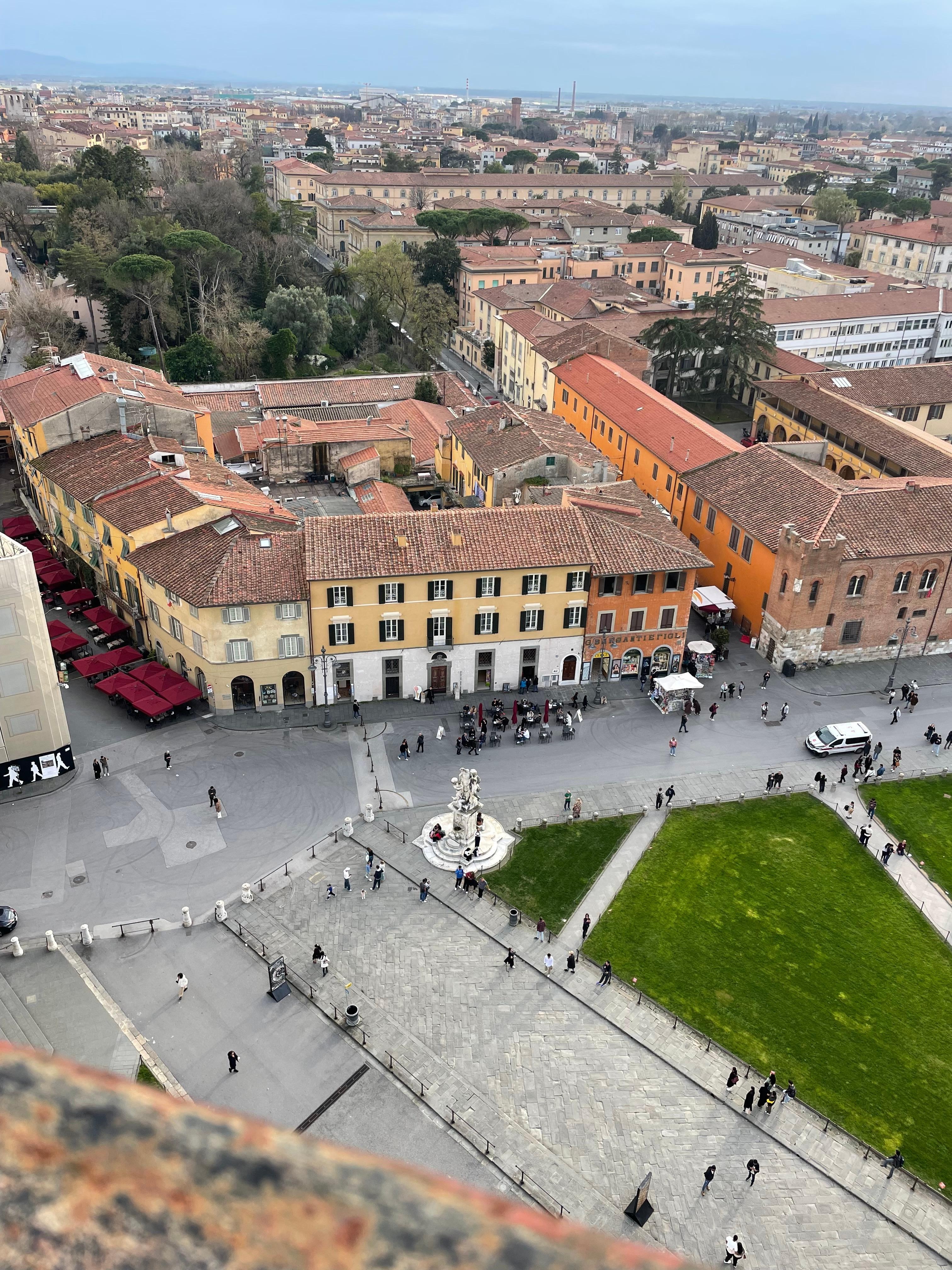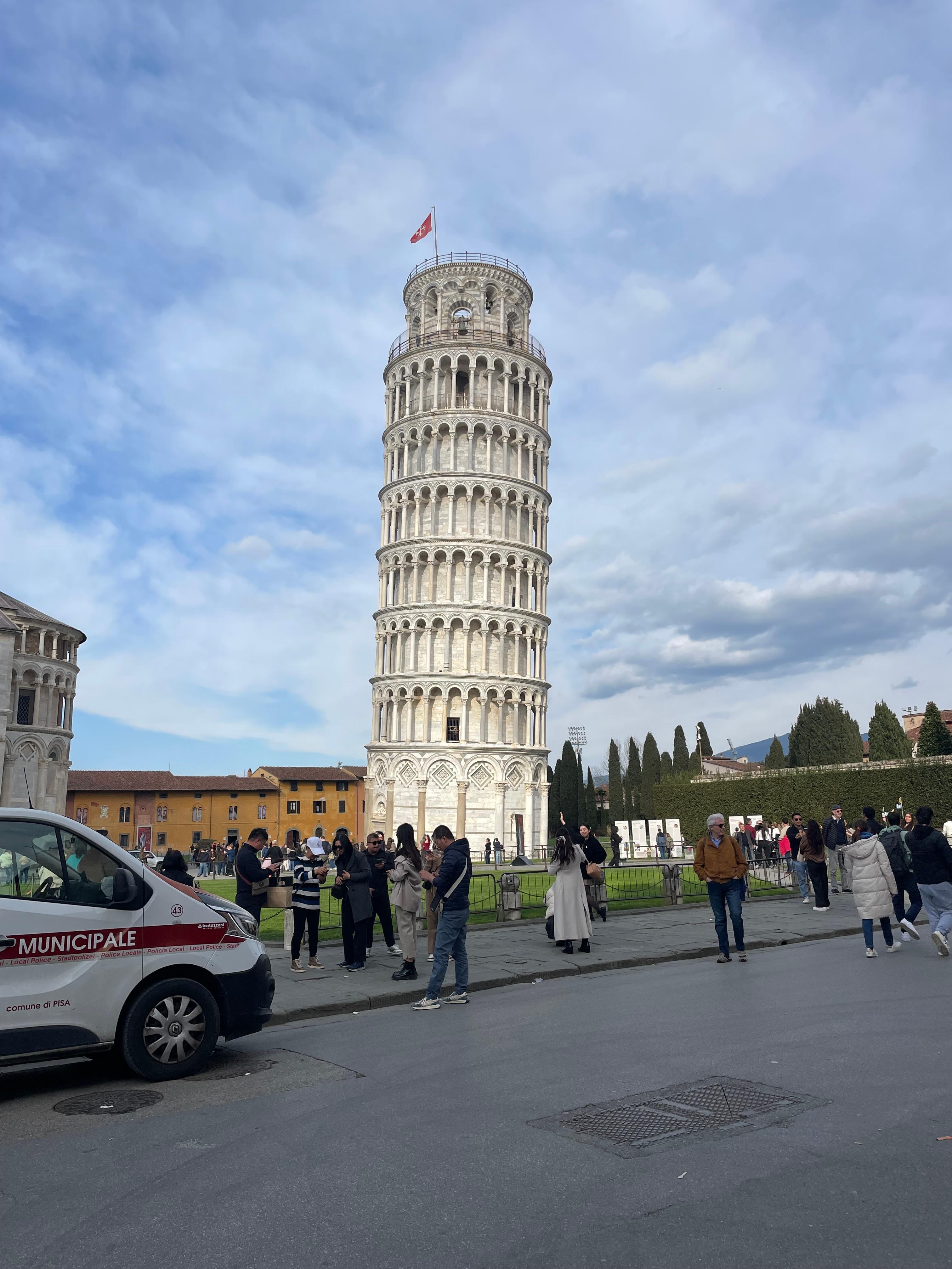 This is an amazing hotel with the Leaning Tower of Pisa literally outside the front door. The rooms were lovely and unusually but tastefully decorated with all the usual amenities and smelled beautiful. We booked a rear room with views of the courtyard and rooftops we were only there for one night on our way home from Florence so didn’t really want to pay extra for the tower view when it was outside the front door. We were able to wander around in the evening and experience the tower and cathedral without the crowds it was great. There’s a taxi stand within view of the hotel costing approximately €15 to the train station and airport it was so convenient for us. The staff were helpful and after checkout kept our bags so we could continue to enjoy the sites before our flight later in the day. You get a key card that opens the front door and your room so convenient. There didn’t appear to be any other hotels on this row it was a great find! 😀
