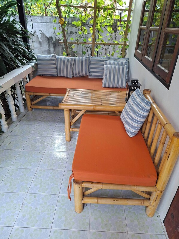 Room-house for Rants Very goo tarjoaa asiakkaiden käyttöön puutarhan.