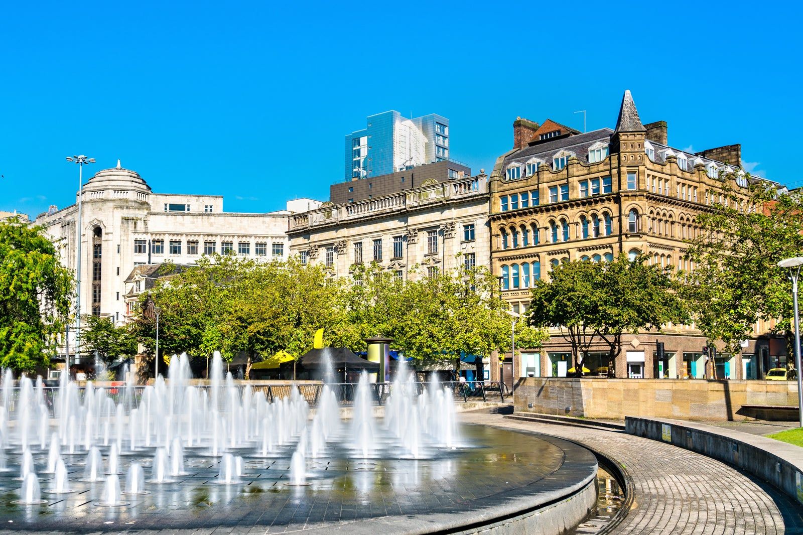 Piccadilly Gardens is a stretch of green space in the Manchester city centre between the Northern Quarter and Market Street offering a serene escape from the bustle of the city. Piccadilly Gardens offers water features, art, spectacular architecture, benches for relaxing, statues and buildings that trace the whole history of Manchester from the old Victorian shops through to ultramodern office towers.
